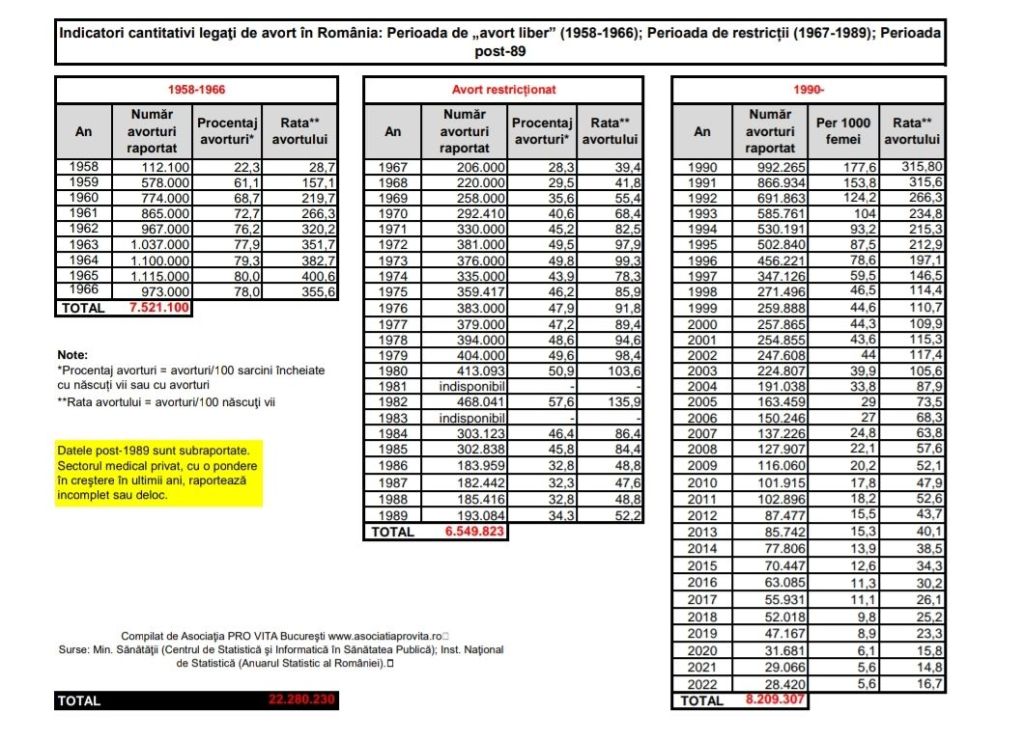 P.P.S. Acestea sunt statisticile avorturilor din România prin care d-l ceaușist credea că demonstrează că Ceaușescu a fost bun și că cifra de 23 de milioane de avorturi nu include epoca Ceaușescu:
